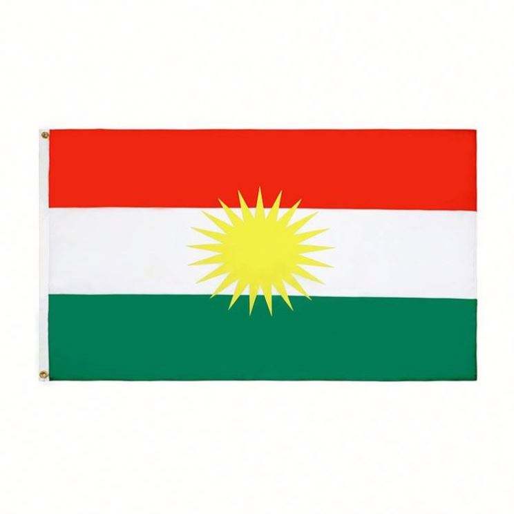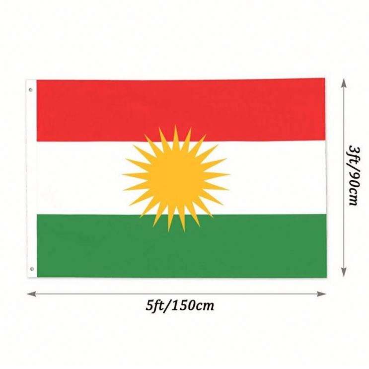ธงชาติเคอร์ดิสถานแบบพกพา พิมพ์ลายสกรีนด้วยผ้าไหม ขนาดและโลโก้สั่งทำได้ ผลิตจากโพลีเอสเตอร์ 68D