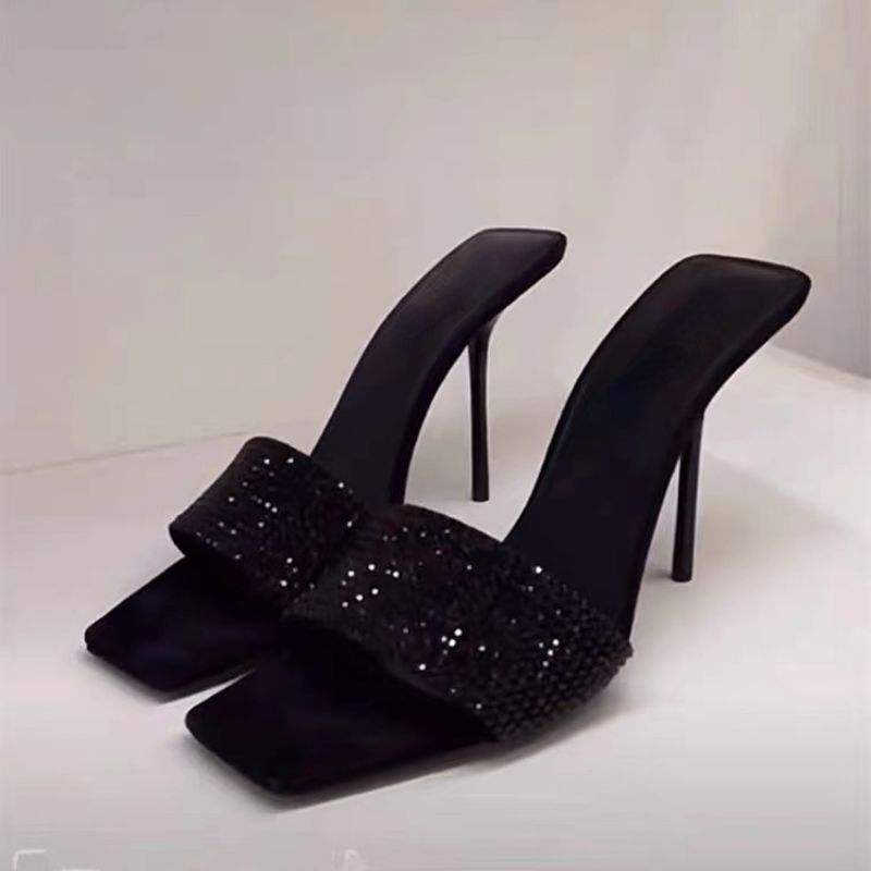 รองเท้าส้นสูงแฟชั่นใหม่ 6 ซม./9 ซม. ประดับเพชร รุ่น Talon Pour Femme สีดำ เซ็กซี่ สำหรับผู้หญิง