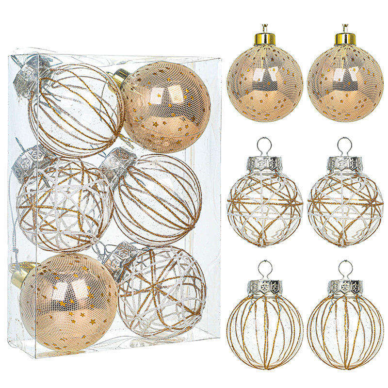 เครื่องประดับคริสต์มาส6ซม. ลูกประดับเลื่อมแวววาวลูกบอลต้นคริสต์มาสกันแตกสีทอง6ชิ้น/เซ็ตเครื่องประดับลูกบอลคริสต์มาส