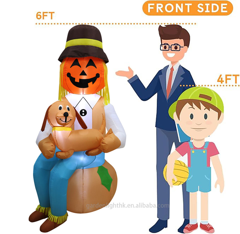 ชื่อผลิตภัณฑ์:หุ่นไล่กาฟักทองเป่าลม6FT พร้อมของตกแต่งเทศกาลใบไม้ร่วงสำหรับสุนัข