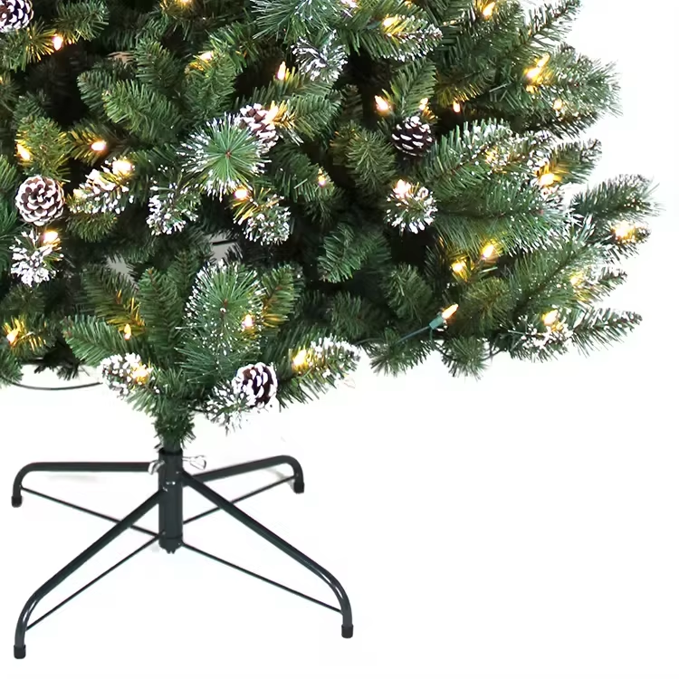 เข็มสีเขียวประดิษฐ์สำหรับตกแต่งในร่ม6FT ไฟ LED ต้นคริสต์มาสฐานโลหะคุณภาพสูงเป็นมิตรกับสิ่งแวดล้อม