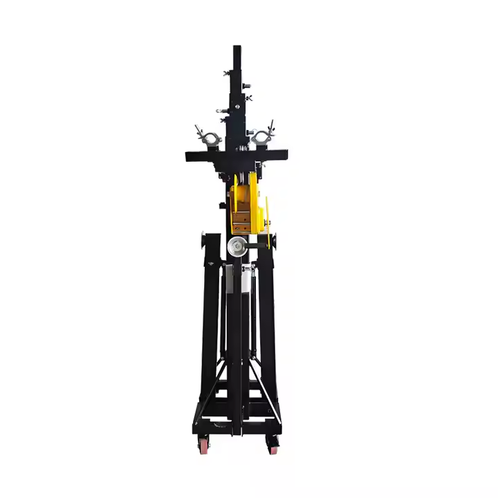 ขาตั้งลำโพงแบบพับได้สำหรับงานดีเจ รองรับน้ำหนักได้ 350 กก. สูง 6 เมตร ใช้สำหรับงานกลางแจ้ง พร้อมระบบยกด้วยมือหมุน สำหรับติดตั้งไฟเวที