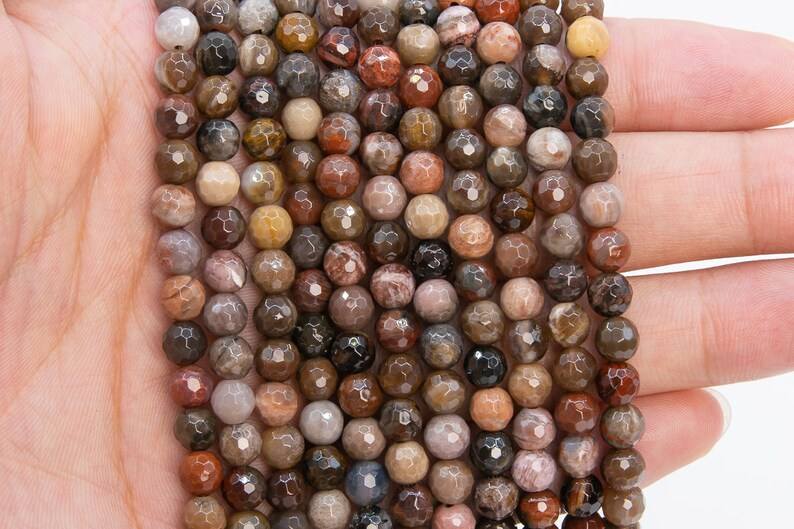 ลูกปัดไม้หินแจสเปอร์สีน้ำตาลขนาด 6 มม. ของแท้จากธรรมชาติ รูปทรงกลมเหลี่ยมเล็กๆ แบบไม่มีเจียระไน จำนวนมาก