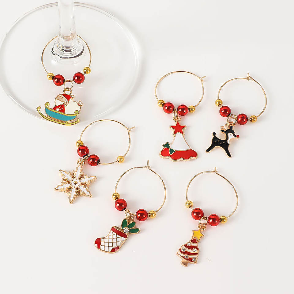 ธีมคริสต์มาส6ชิ้น/เซ็ตเสน่ห์ของแก้วไวน์สไตล์