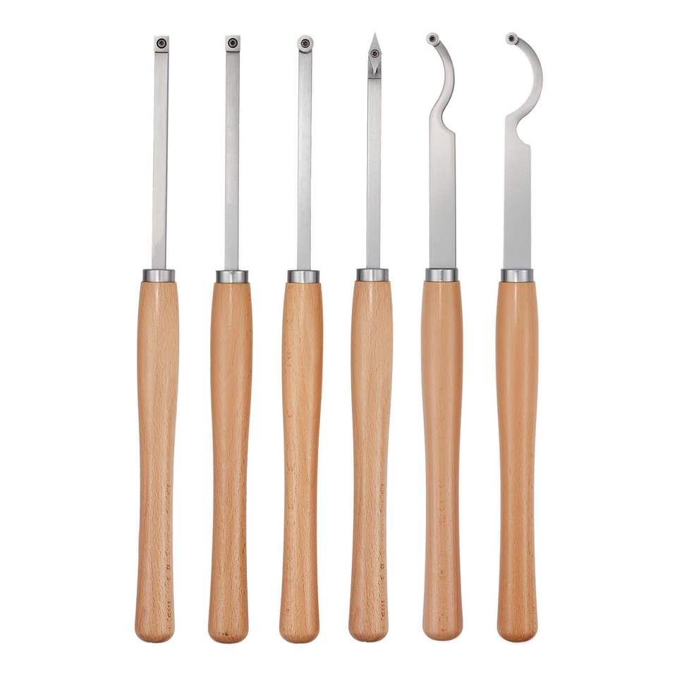 ชุดเครื่องมือกลึงไม้ 6 ชิ้น พร้อมหัวกลึงเพชรทรงสี่เหลี่ยม สำหรับงานกลึงหยาบ งานกลึงละเอียด และงานกลึงลายฉลุ ด้ามจับไม้