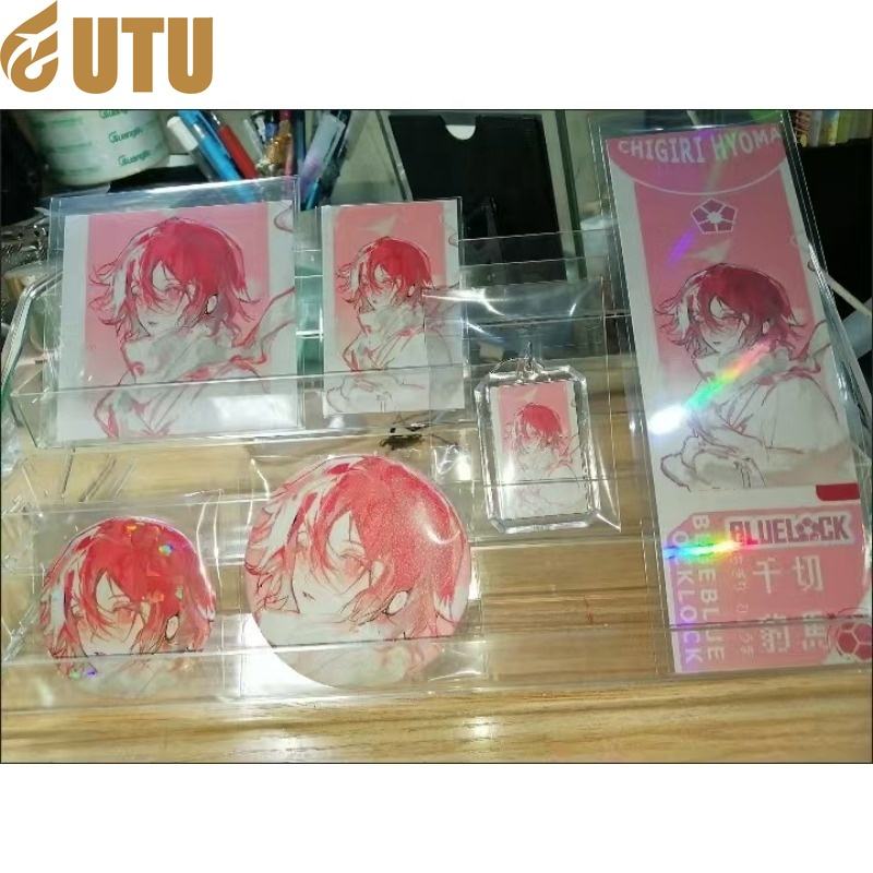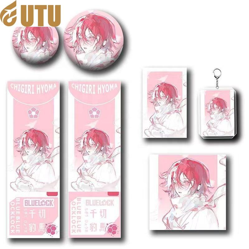 ชุดของขวัญ6ชิ้น/เซ็ตการ์ตูนอนิเมะ chigiri hyoma พวงกุญแจของเล่นป้ายเลเซอร์โลโมการ์ดโปสการ์ดบัตรเลเซอร์แขนเสื้อของขวัญ-F