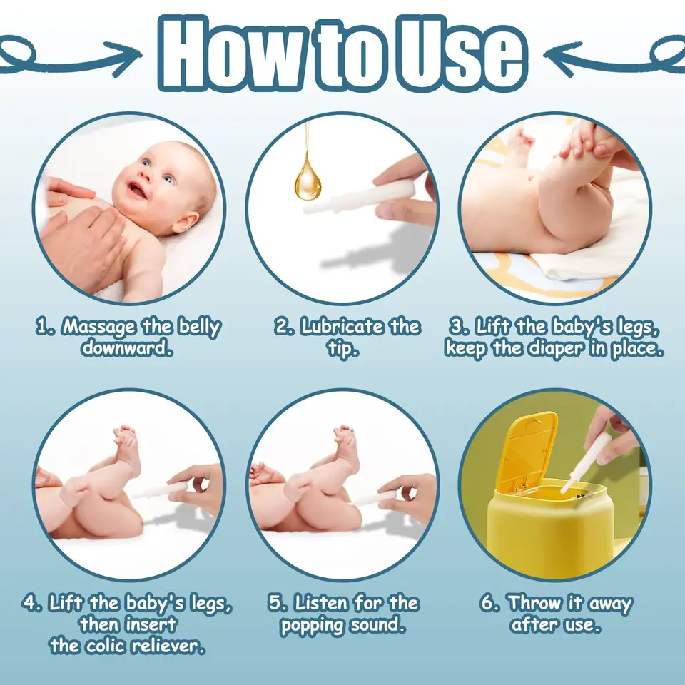 ชุด 6 ชิ้น/เซ็ต ผลิตภัณฑ์จากธรรมชาติ 100% ปลอดภัยและมีประสิทธิภาพ บรรเทาอาการท้องผูกทันที บรรเทาอาการท้องอืดและอาการปวดท้องสำหรับเด็กที่มีอาการท้องอืด