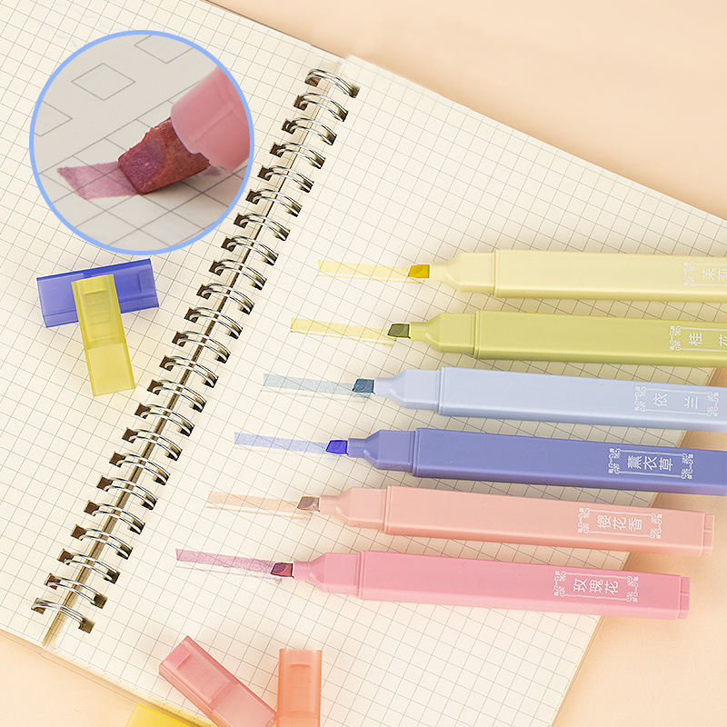 ปากกาเน้นข้อความป้องกันดวงตาปลายนุ่ม6ชิ้น/เซ็ตปากกาเรืองแสงหลากสีสำหรับเด็กของขวัญเด็กนักเรียนออฟฟิศ
