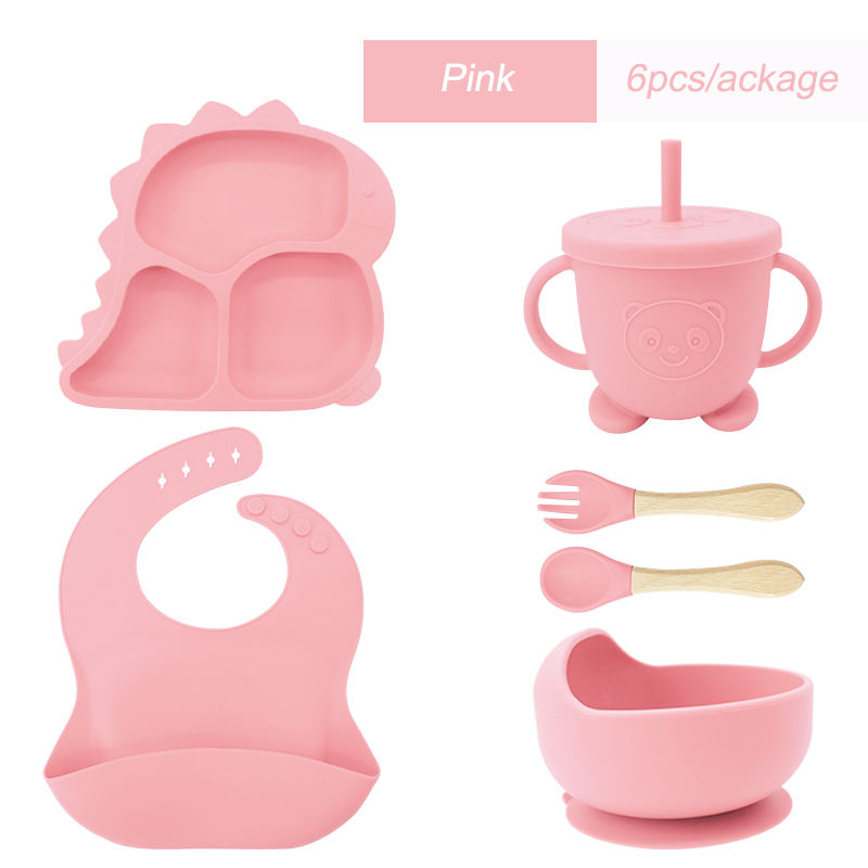 ชุดจานซิลิโคนรูปไดโนเสาร์ 6 ชิ้น ชามรูปหอยทาก ชุดอาหารสำหรับเด็ก ปลอดสาร BPA ใช้กับไมโครเวฟและเครื่องล้างจานได้ ฝึกการดื่มน้ำ พร้อมฐานกันลื่น