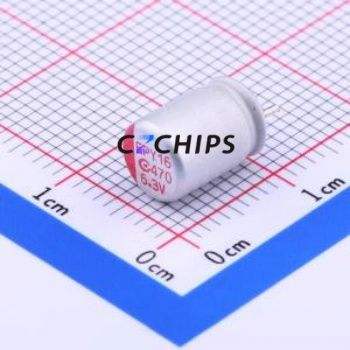 ตัวเก็บประจุแบบแข็ง 6R3AREP471M06X8E11P26 แบบ Through hole (THT), ขนาด D6.3xL8 มม. 470uF 20% 6.3V 4A100kHz