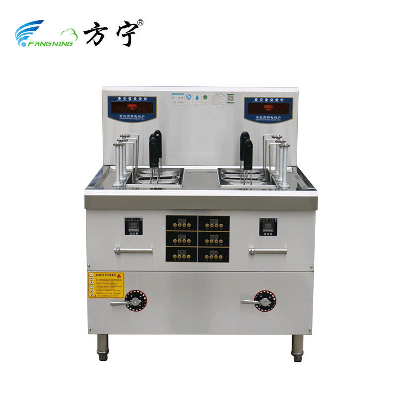 เตาทอดไฟฟ้าอัตโนมัติกำลังสูงแบบแม่เหล็กไฟฟ้า 6 หน้าจอ ยี่ห้อ Fang Ning รุ่นยกอัตโนมัติแบบกระบอกสูบคู่ สำหรับเชิงพาณิชย์