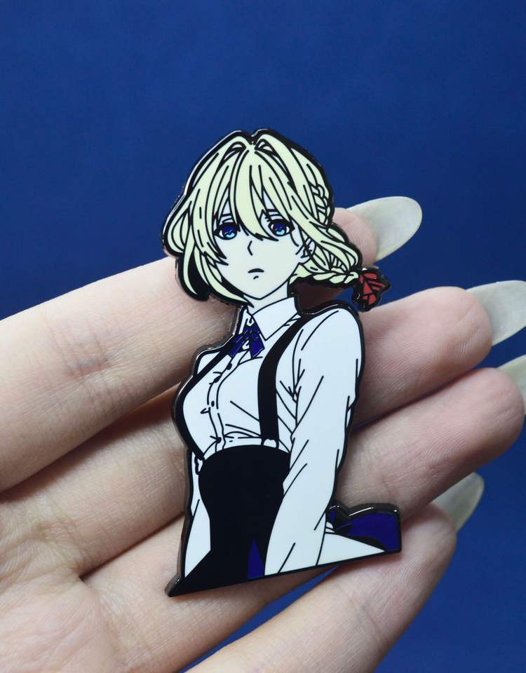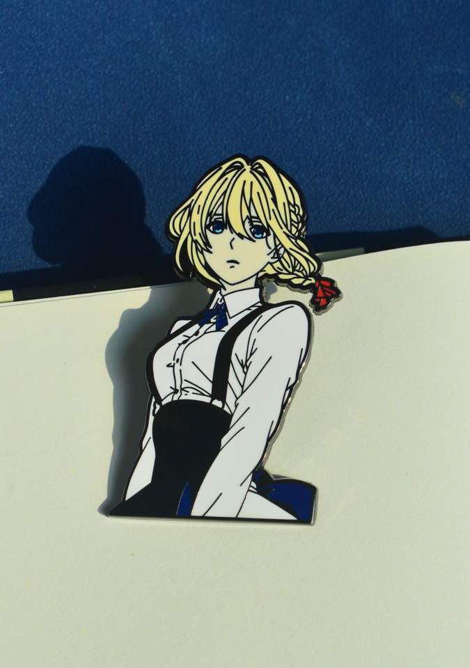 หมุดโลหะเคลือบเงาคุณภาพสูง6ซม. หมุดอะนิเมะสีม่วงของ evergarden สำหรับแฟนๆอะนิเมะเป็นของขวัญงานฝีมือโลหะ