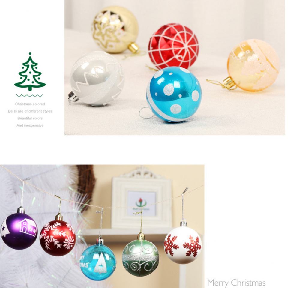 ชุดลูกบอลพลาสติก PVC หลากสีขนาด 6 ซม. สำหรับตกแต่งต้นคริสต์มาส