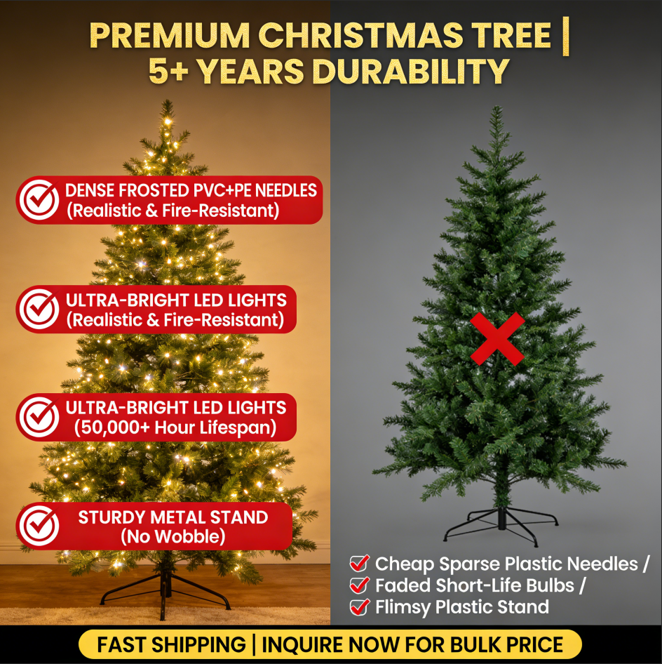 6ft/7ft/8ft Realistic Artificial Christmas Tree Full Branch Flocked PE Needles LED Lights | Premium Indoor Holiday Decoration