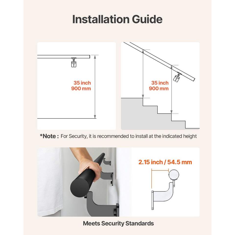 ราวบันไดและราวบันไดอะลูมิเนียมติดผนังสีดำ6FT