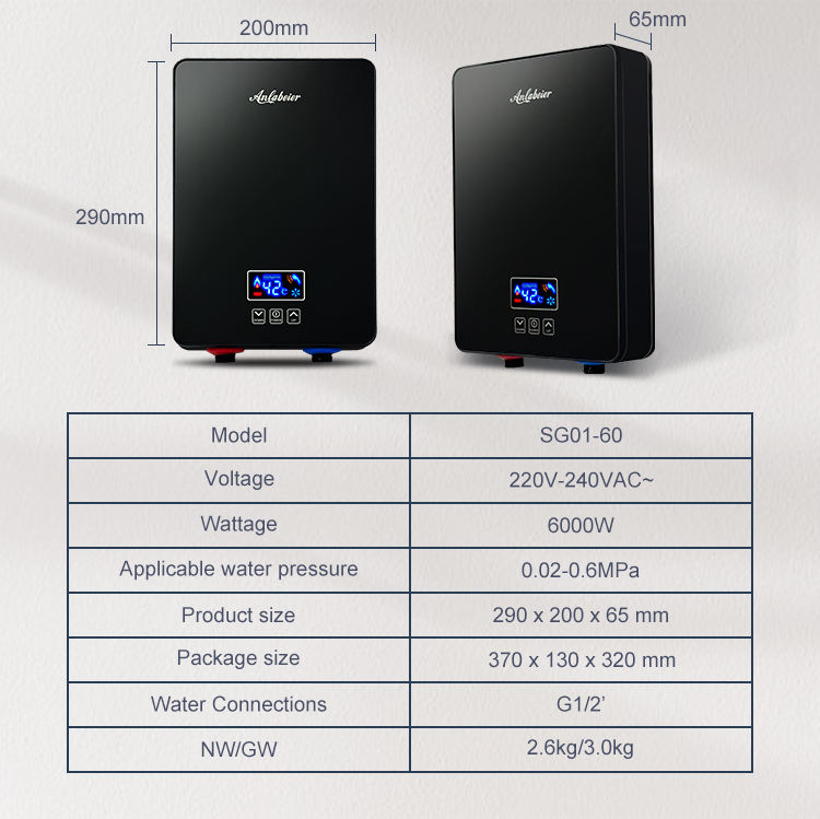 เครื่องทำน้ำอุ่นไฟฟ้าแบบทันที 6 กิโลวัตต์ สำหรับบ้านทั้งหลัง ให้ความร้อนรวดเร็ว ประหยัดพลังงาน ควบคุมด้วยหน้าจอ LCD