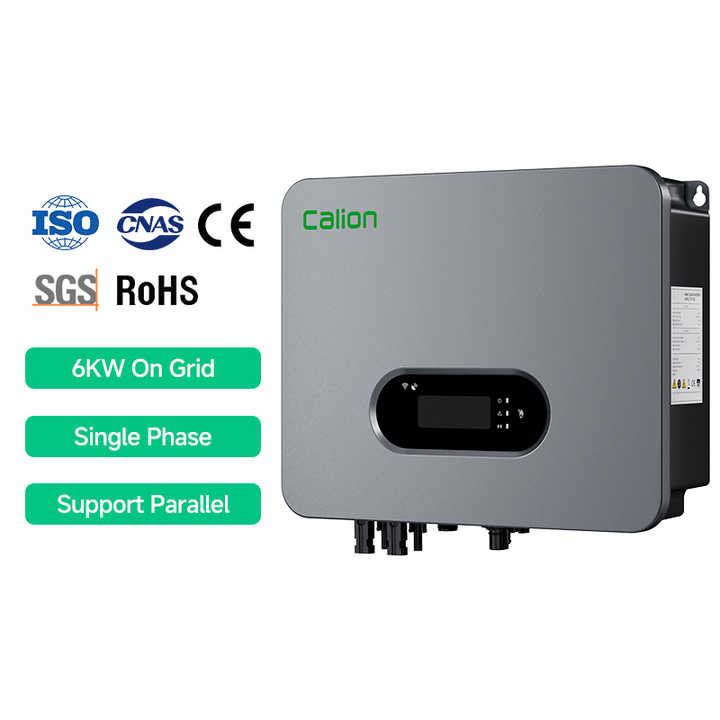ระบบอินเวอร์เตอร์พลังงานแสงอาทิตย์แบบไฮบริด Calion 6KW สำหรับเชื่อมต่อกับระบบไฟฟ้าสาธารณะ มาตรฐาน IP66 ประสิทธิภาพ 97.6% คลื่นไซน์บริสุทธิ์ จ่ายไฟเฟสเดียว 220V อินเวอร์เตอร์แบบสตริง