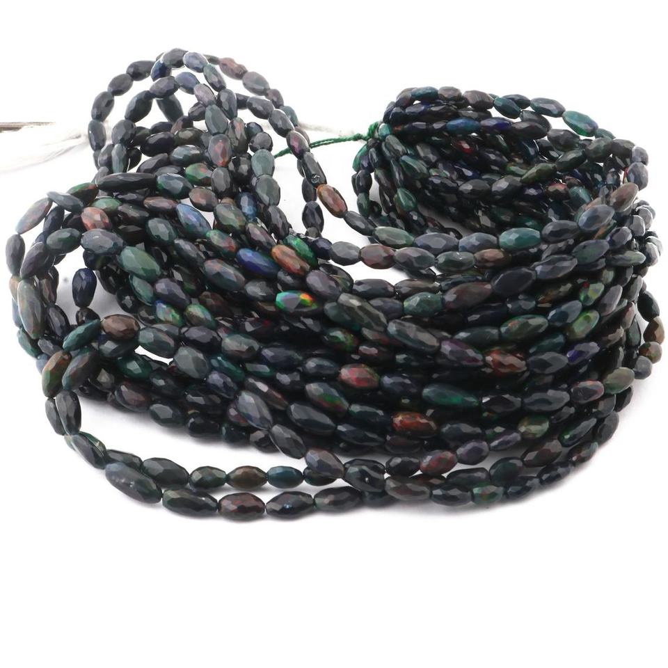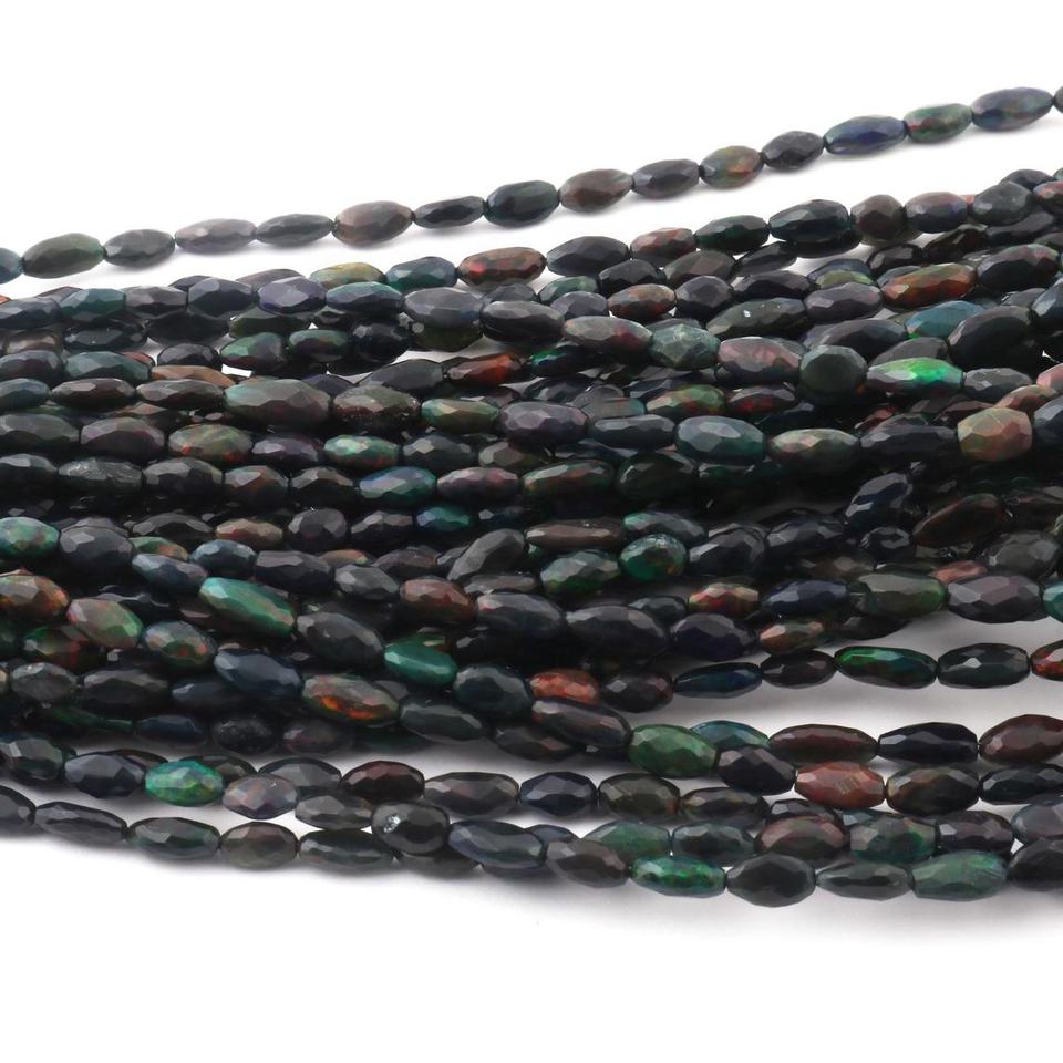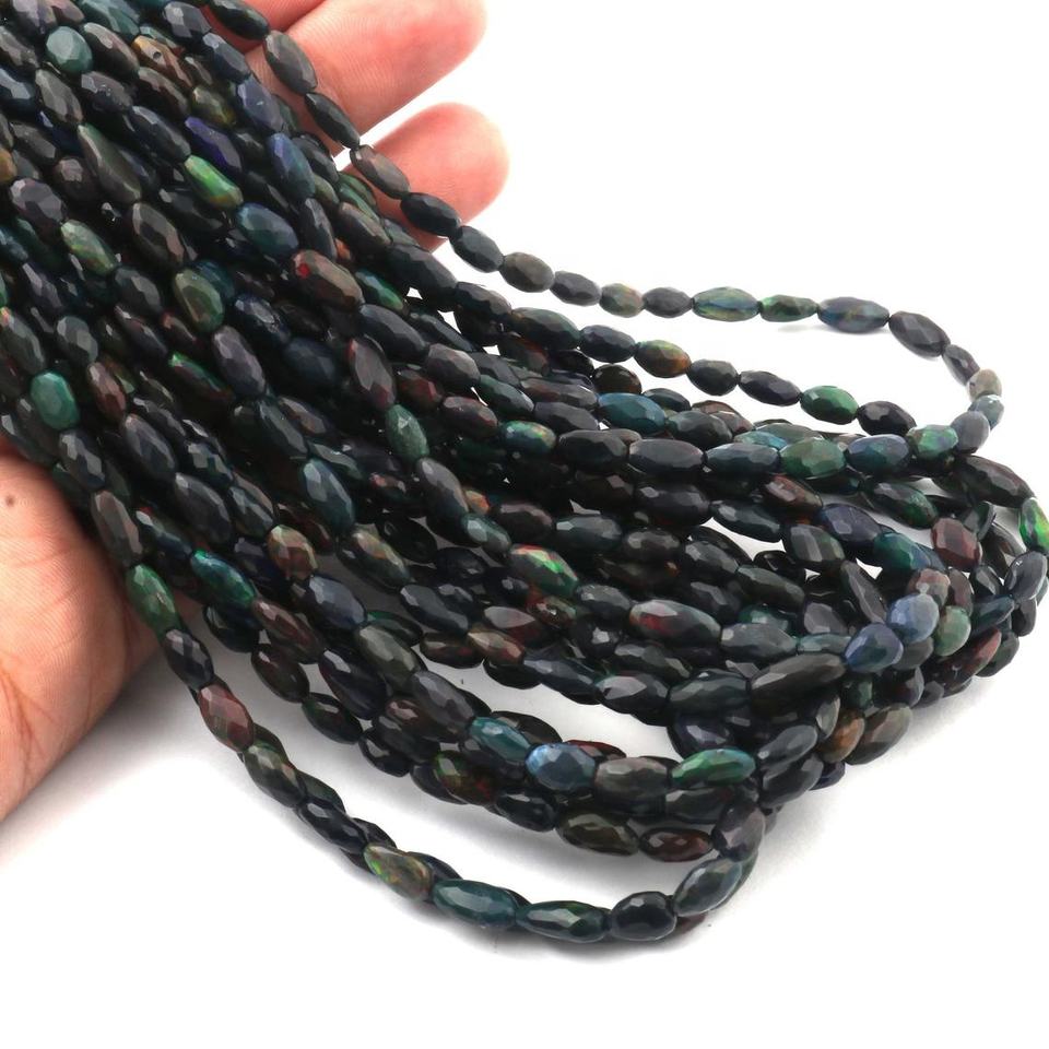 ลูกปัดหินอัญมณีทรงวงรีทรงไข่ขนาด6มม.-10มม. โอปอลสีดำจากเอธิโอเปียสำหรับการตั้งค่าเครื่องประดับ