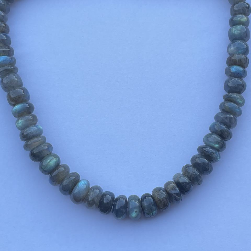 สร้อยคอหินลาบราโดไรต์ธรรมชาติ ทรงรอนเดลเรียบ ลูกปัดอัญมณีมาแรง