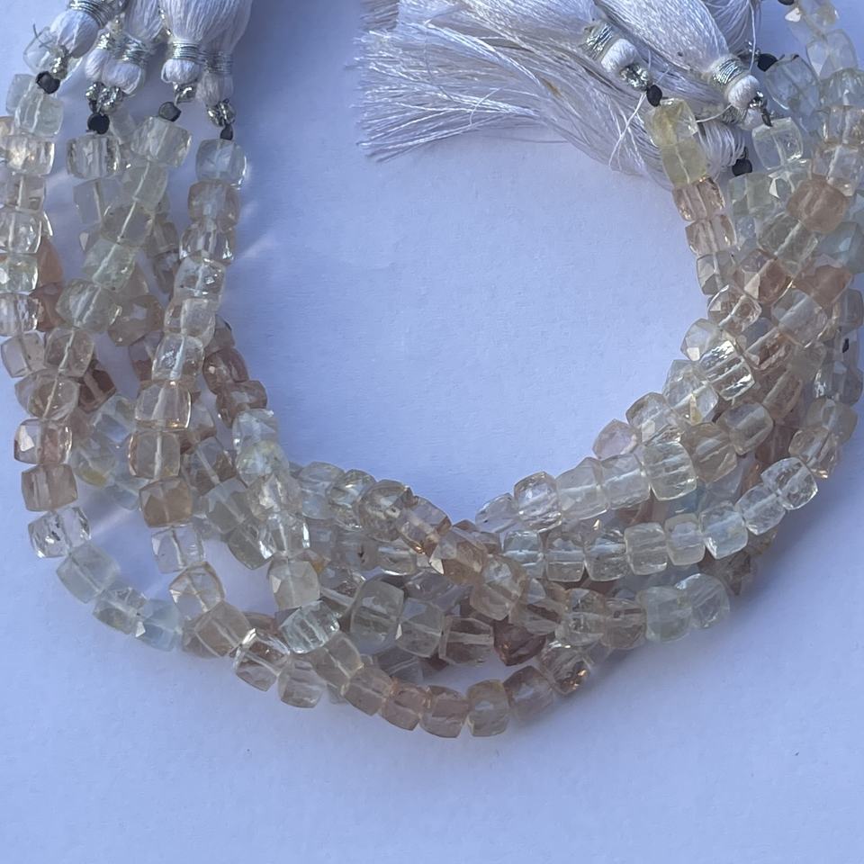 Natural Brown Imperial Topaz Stone Faceted Cube Box Gemstone Beads