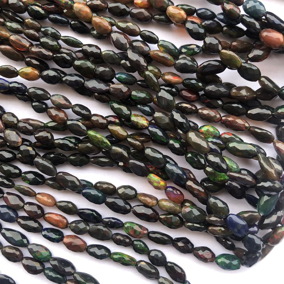 Product Name:Natural Ethiopian Black Opal Faceted Oval Stone Beads