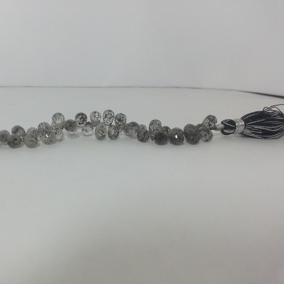 Product Name:Natural Black Dot Rutile Quartz Faceted Tear Drop Briolette Beads