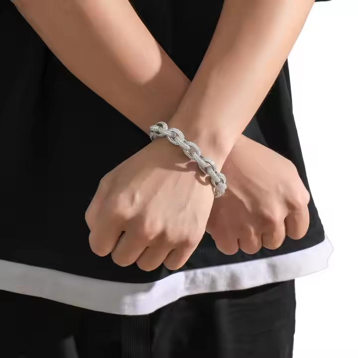 6มม. 925เงินสเตอร์ลิง VVS Moissanite สร้อยข้อมือโซ่แบบคิวบาชุบทองทันสมัยได้รับการรับรองจากบุคคลที่สามสำหรับผู้ชาย