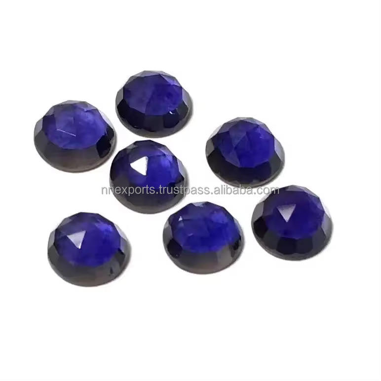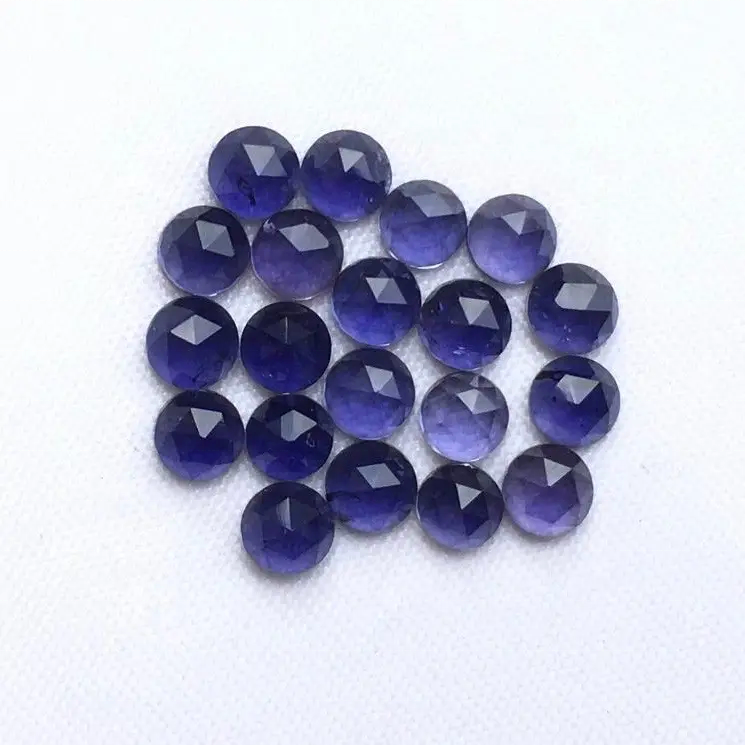 พลอยไอโอไลต์สีน้ำเงินธรรมชาติขนาด 6 มม. รูปทรงโรสคัทแบบกลม ได้รับการรับรองจาก IGI พลอยหลวมแบบแบน หินกึ่งมีค่า ราคาโรงงานที่ดีที่สุด