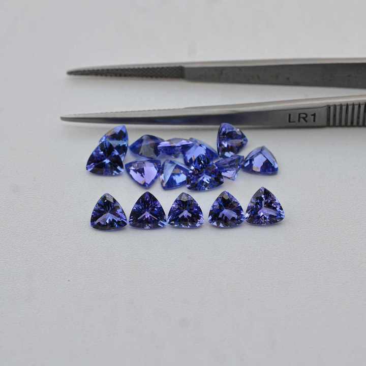 พลอยแทนซาไนต์สีน้ำเงินธรรมชาติขนาด 6 มม. ทรงสามเหลี่ยมเจียระไน คุณภาพ AAA++ ผลิตด้วยมือจากอินเดีย ขายส่งพลอยหลวม หินประจำเดือนธันวาคม