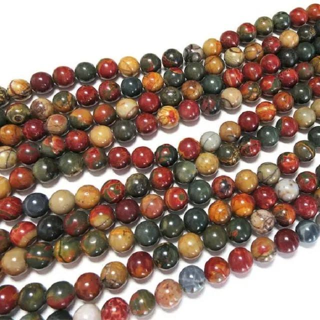Natural Picasso Jasper Smooth Round Stone Beads Strand