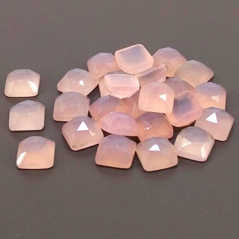 Product Name:Natural Pink Chalcedony Stone Square Cushion Rose Cut Cabochon