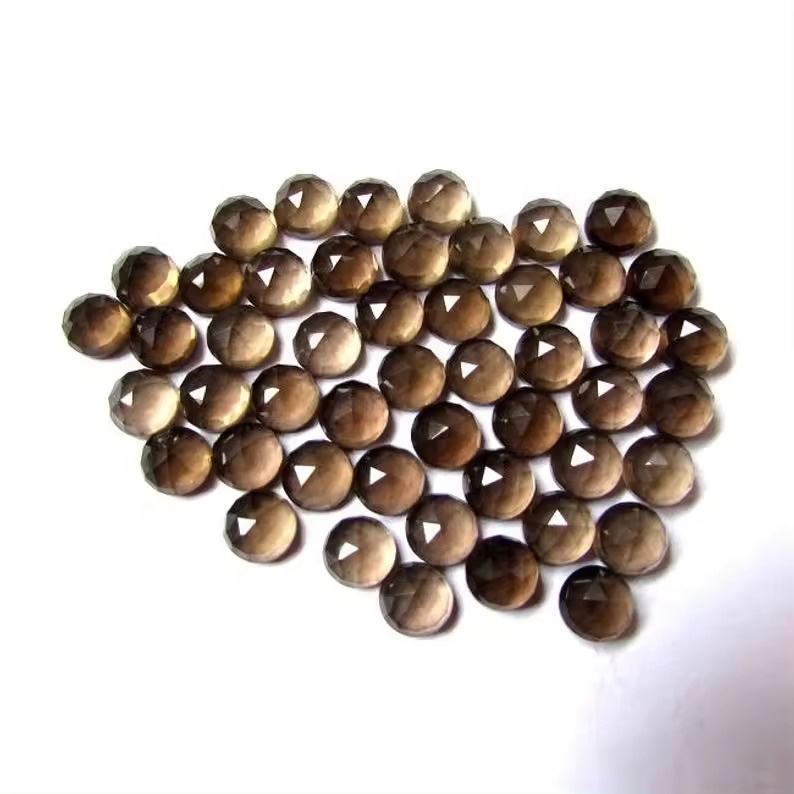 หินควอทซ์สโมคกี้ธรรมชาติขนาด6มม. หินอัญมณีทรงหลวมแบบตัดกลมอัญมณีอินเดียแบบทำเอง