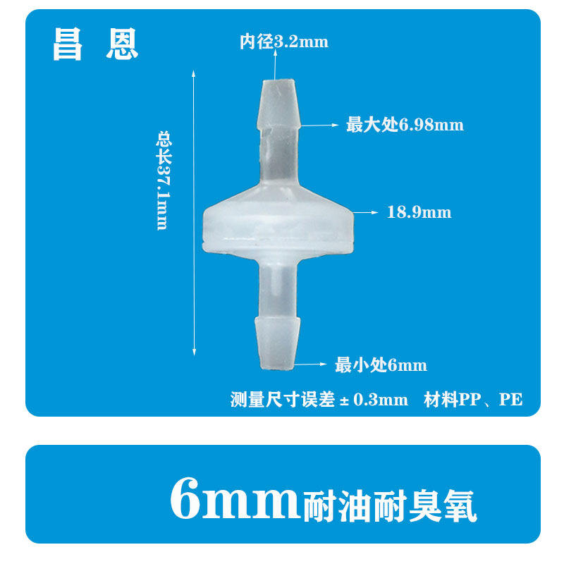 วาล์วตรวจสอบแบบไม่ไหลย้อนกลับและวาล์วหยุดแบบพลาสติกทนโอโซนและทนน้ำมันขนาด 6 มม. สำหรับสภาพแวดล้อมที่ได้รับการปกป้องจากโอโซน