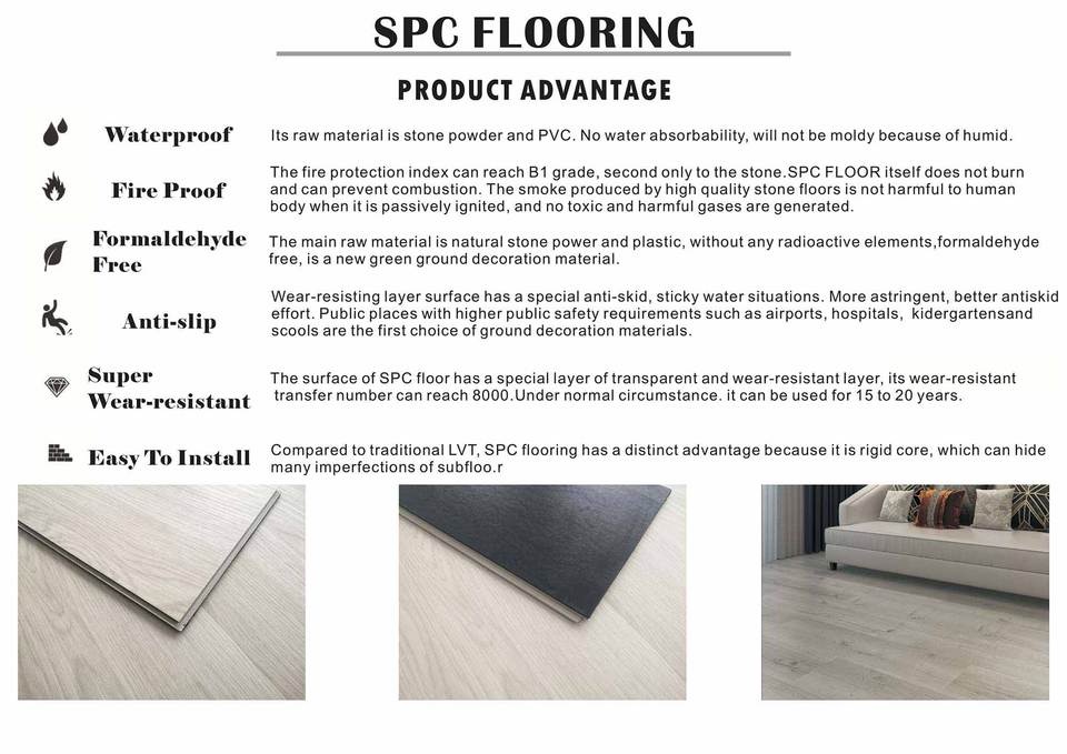 พื้น SPC PVC หนา 6 มม. ระบบคลิ๊กล็อค Unilin ราคาโรงงาน OEM กันน้ำ กันไฟ ไม้ไวนิลหรูหรา แผ่นและกระเบื้องพลาสติกสำหรับปูพื้นภายในอาคาร