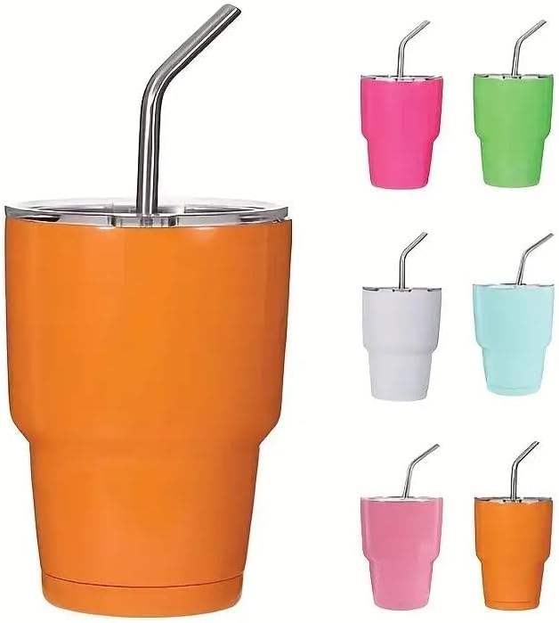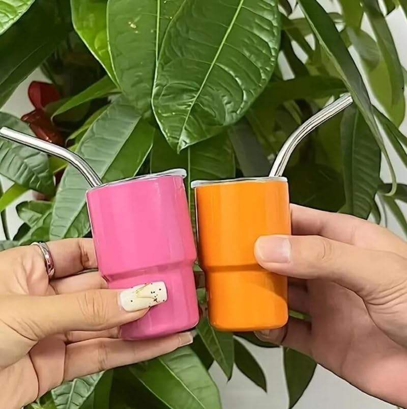 ชุดแก้วช็อตขนาดเล็ก 6 ชิ้น ขนาด 2 ออนซ์ พร้อมฝาปิดและหลอดดูด แก้วหลากสีสัน แก้วน่ารัก สแตนเลสสตีล แก้วเก็บความร้อนสุญญากาศสองชั้น