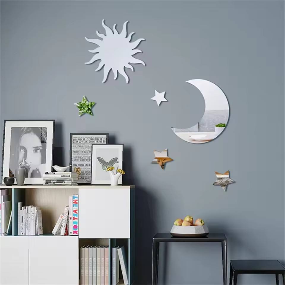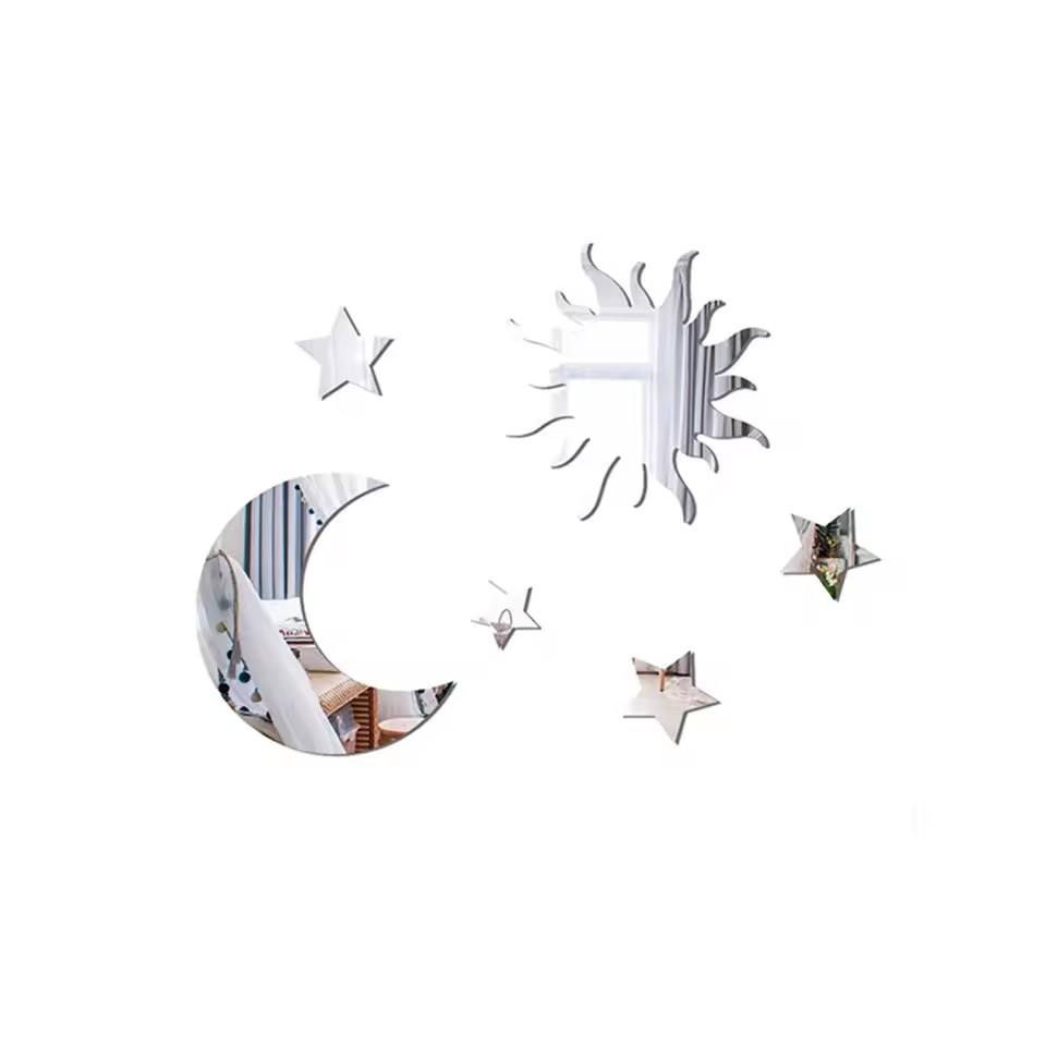 สติ๊กเกอร์ติดผนังรูปดาวและพระจันทร์ 3 มิติ 6 ชิ้น อะคริลิกแบบลอกออกได้ ตกแต่งผนังเพดานห้องนั่งเล่น สำหรับตกแต่งบ้าน