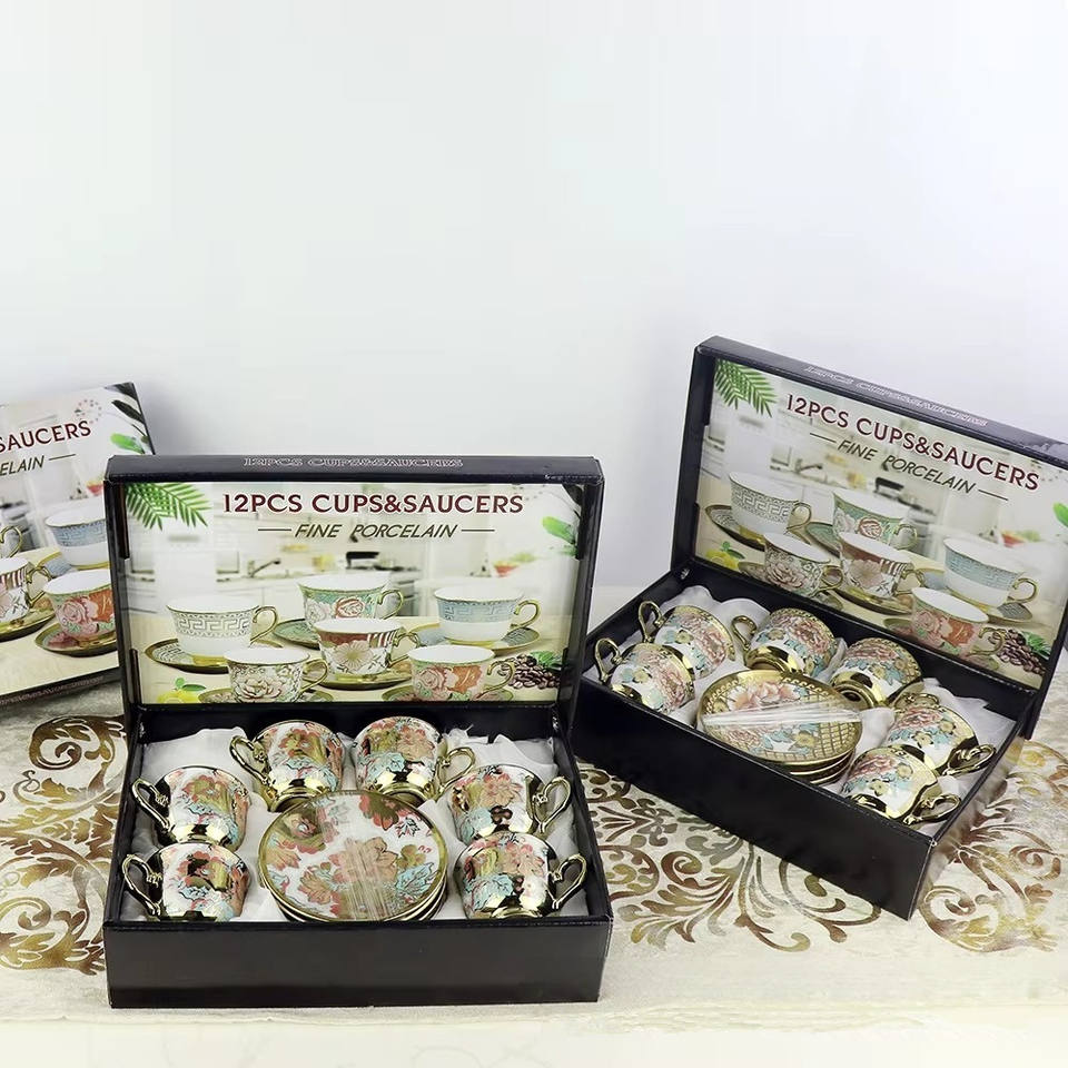 ชุดแก้วกาแฟเอสเปรสโซสไตล์อเมริกัน 12 ชิ้น ทำจากพอร์ซเลนรักษ์โลก พร้อมถ้วยชาและจานรอง ชุดของขวัญสำหรับธุรกิจ ขนาด 50-100 มล.