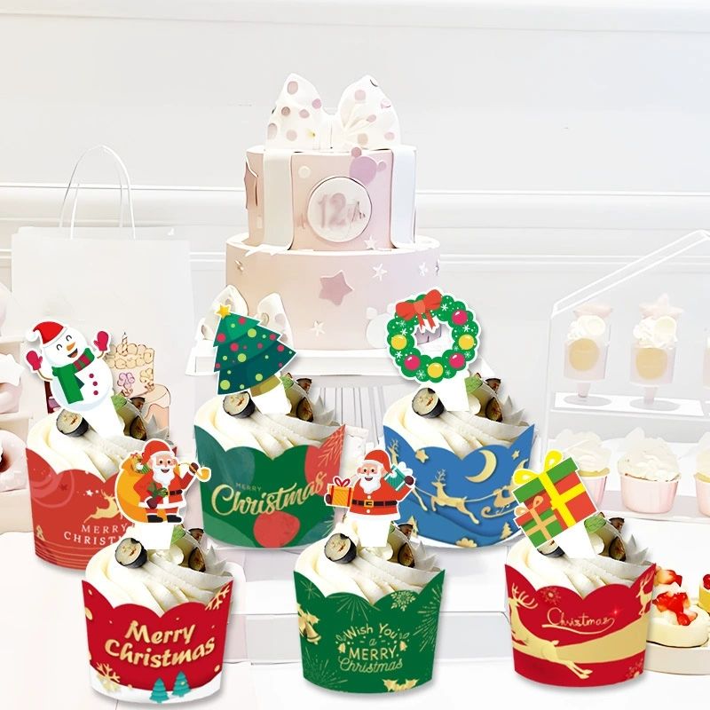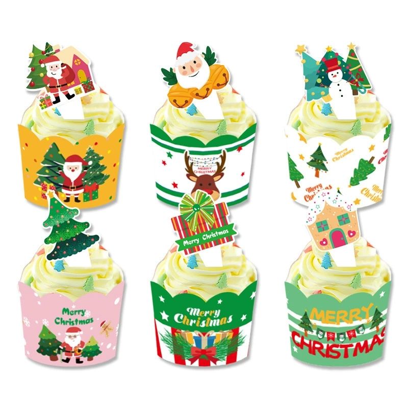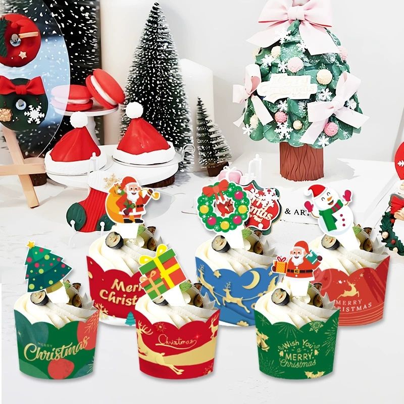6ชิ้นอุปกรณ์ปาร์ตี้คริสมาสต์แพ็คของท็อปเปอร์เค้กแพ็คจำนวนมากหยิบธงและคัพเค้กห่อสำหรับตกแต่งคริสต์มาสวันหยุด