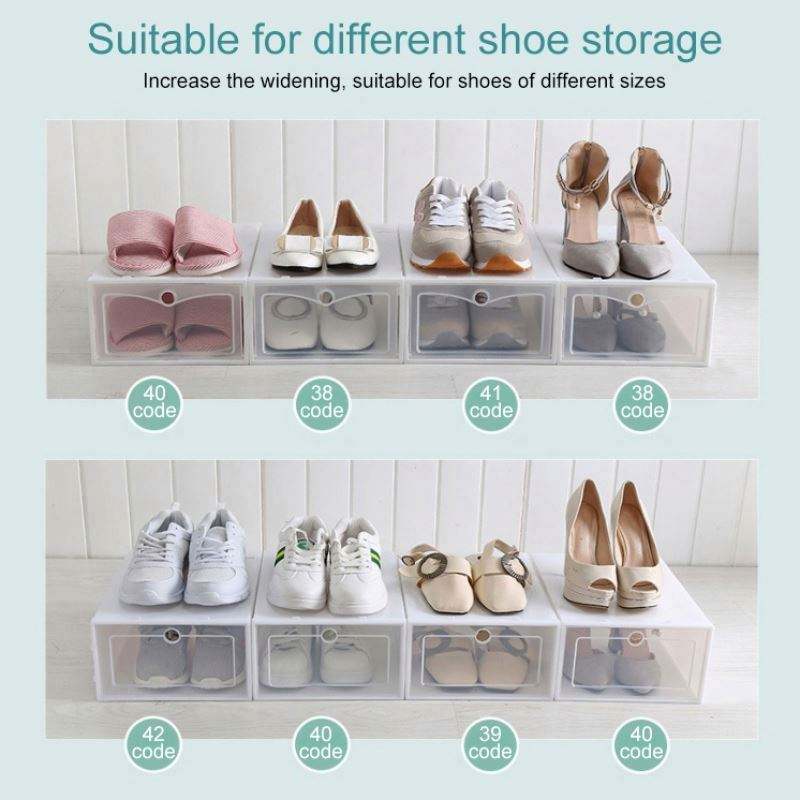กล่องใส่รองเท้าพลาสติกแบบพับได้ 6 ชิ้น/ชุด กล่องใส่รองเท้าแบบหนาใส กล่องเก็บรองเท้าแบบซ้อนได้ กล่องจัดระเบียบรองเท้า