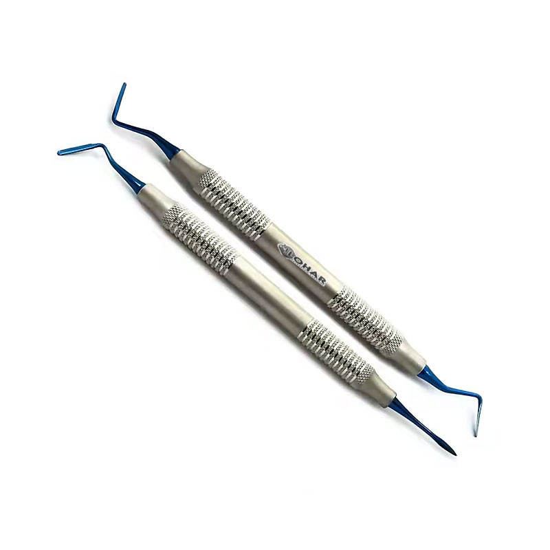 ชุดเครื่องมือทันตกรรม6ชิ้นประกอบด้วยไม้พายเติมเรซินเคลือบไทเทเนียมสีฟ้า
