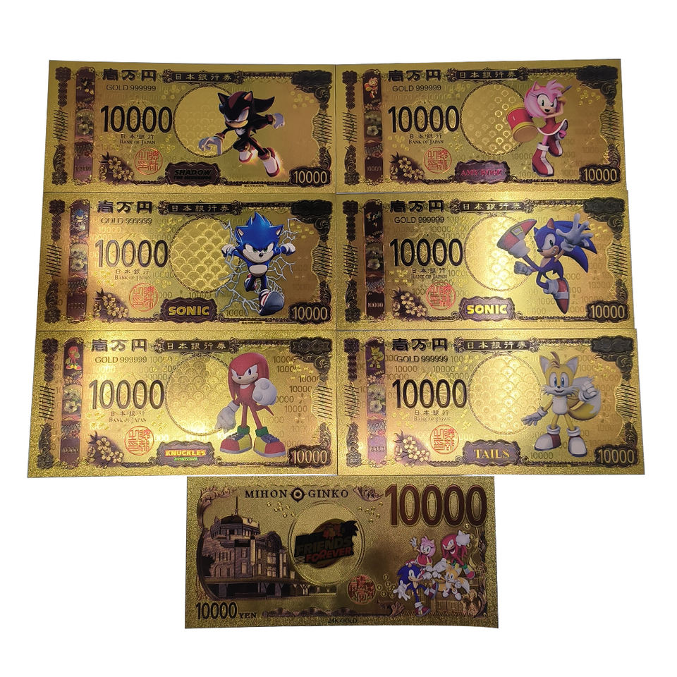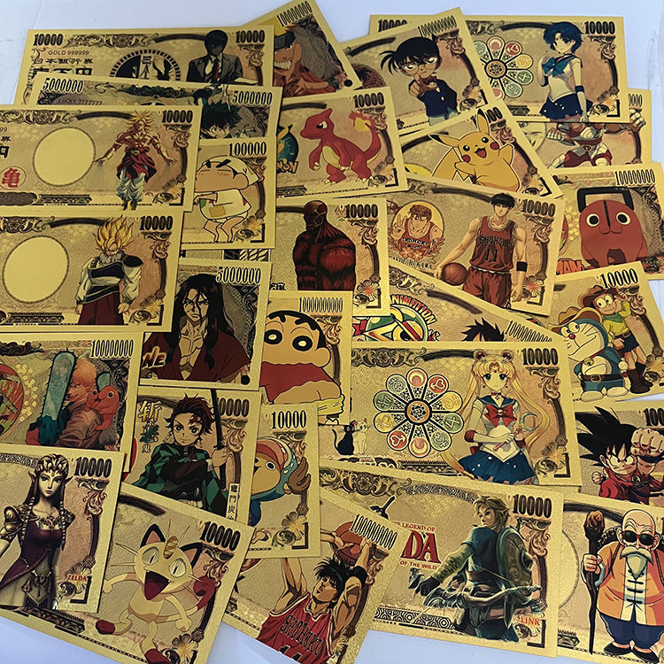6pcs/set Many Designs Japanese Anime Manga Yen Money Collection 24k Gold Plated Banknotes
