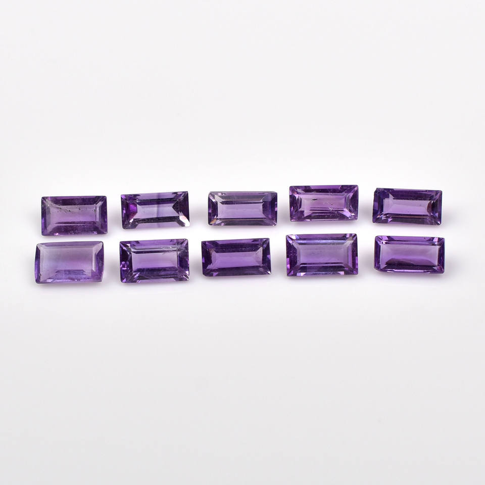 พลอยอะเมทิสต์แอฟริกันธรรมชาติทรงบาแกตต์ขนาด 6x12 มม. เกรด AAA++ ผ่านการรับรองจากผู้ตรวจสอบอิสระ ความแข็ง 6.5 ขายส่ง