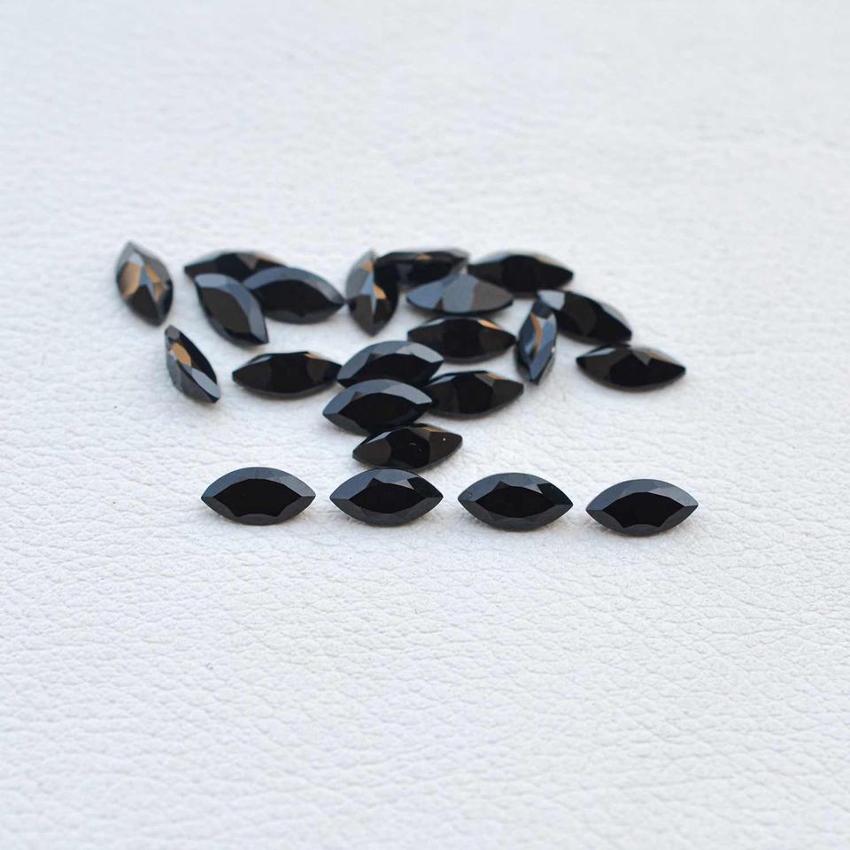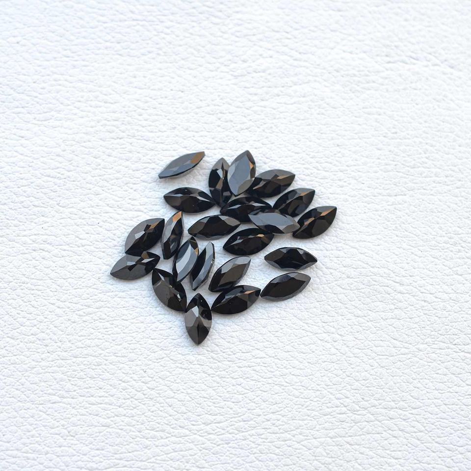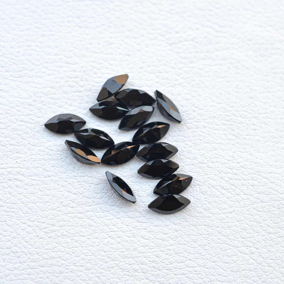 พลอยออนิกซ์สีดำธรรมชาติทรงมาร์ควิสขนาด 6x12 มม. แบบเจียระไน สำหรับทำเครื่องประดับ ผลิตด้วยมือโดยผู้ผลิตจากอินเดีย จำหน่ายออนไลน์