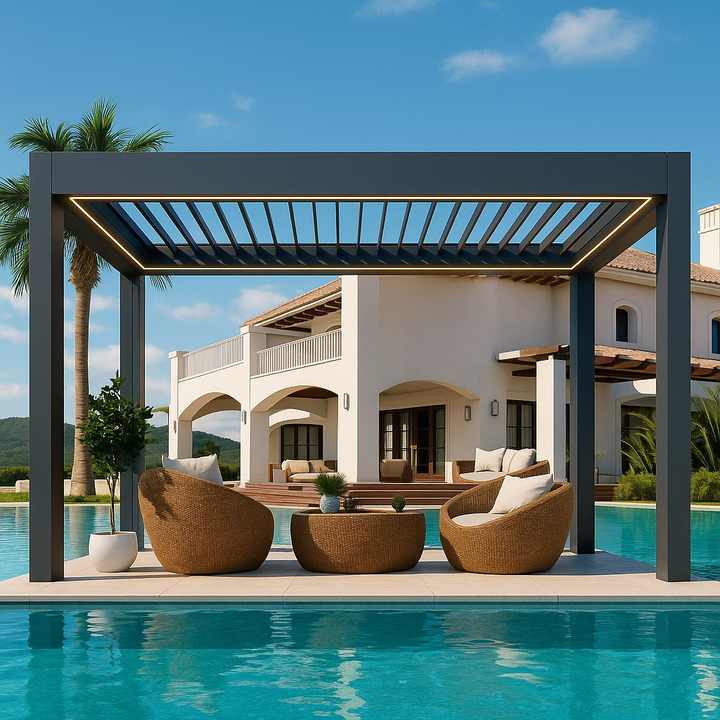 6x4 Pergola อลูมิเนียมชีวภาพกันน้ำมอเตอร์พร้อมบานเกล็ดปรับได้และระบบเซ็นเซอร์ฝน