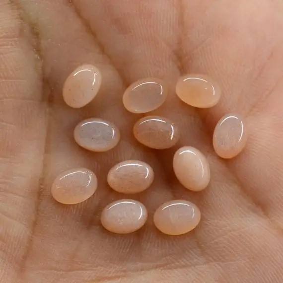 พลอยมูนสโตนทรงวงรีทรงหลวมสีพีชธรรมชาติขนาด4มม. 6มม.