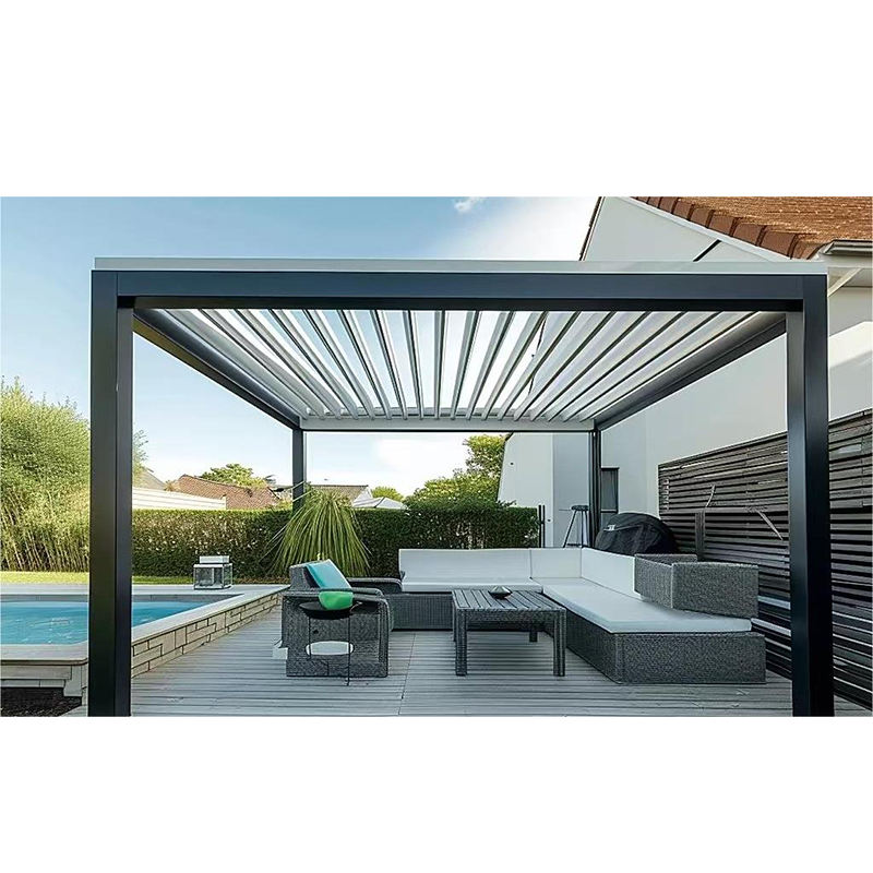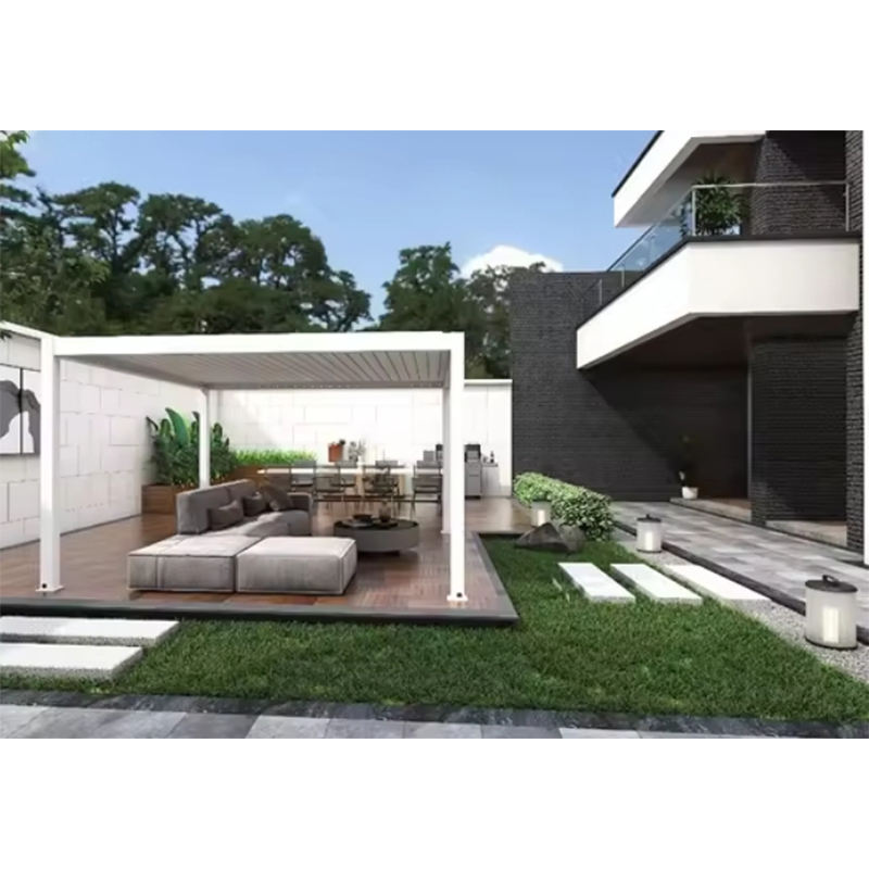 เฟอร์นิเจอร์ทันสมัยหรูหรา ขนาด 6x6 3x3 3x4 เมตร ศาลาพักผ่อนแบบมีมอเตอร์ กันน้ำ หลังคาผ้าใบพับเก็บได้ โครงอะลูมิเนียมสำหรับสวนกลางแจ้ง