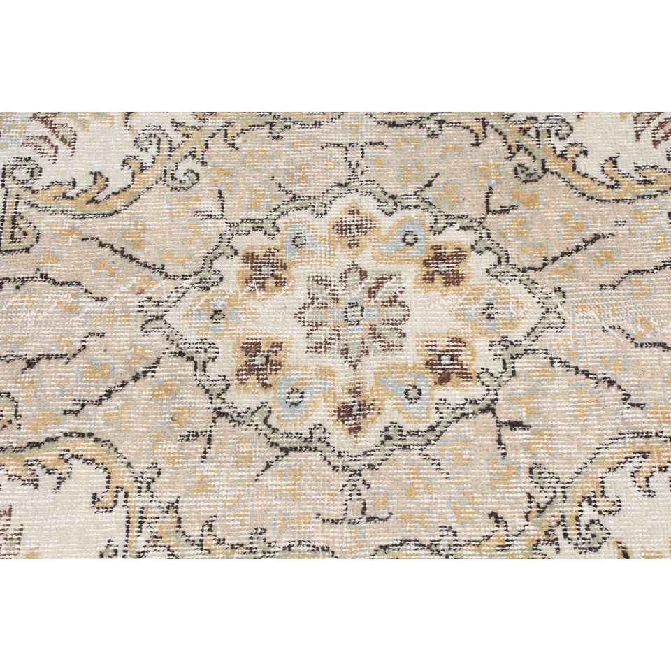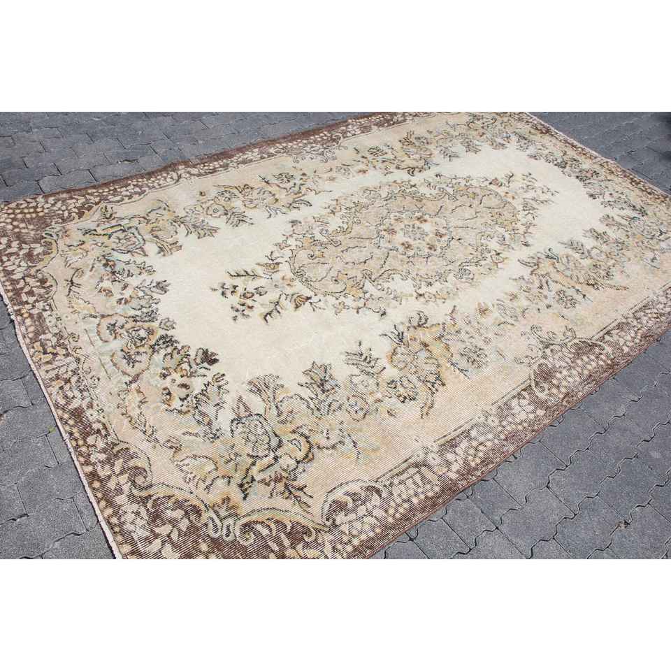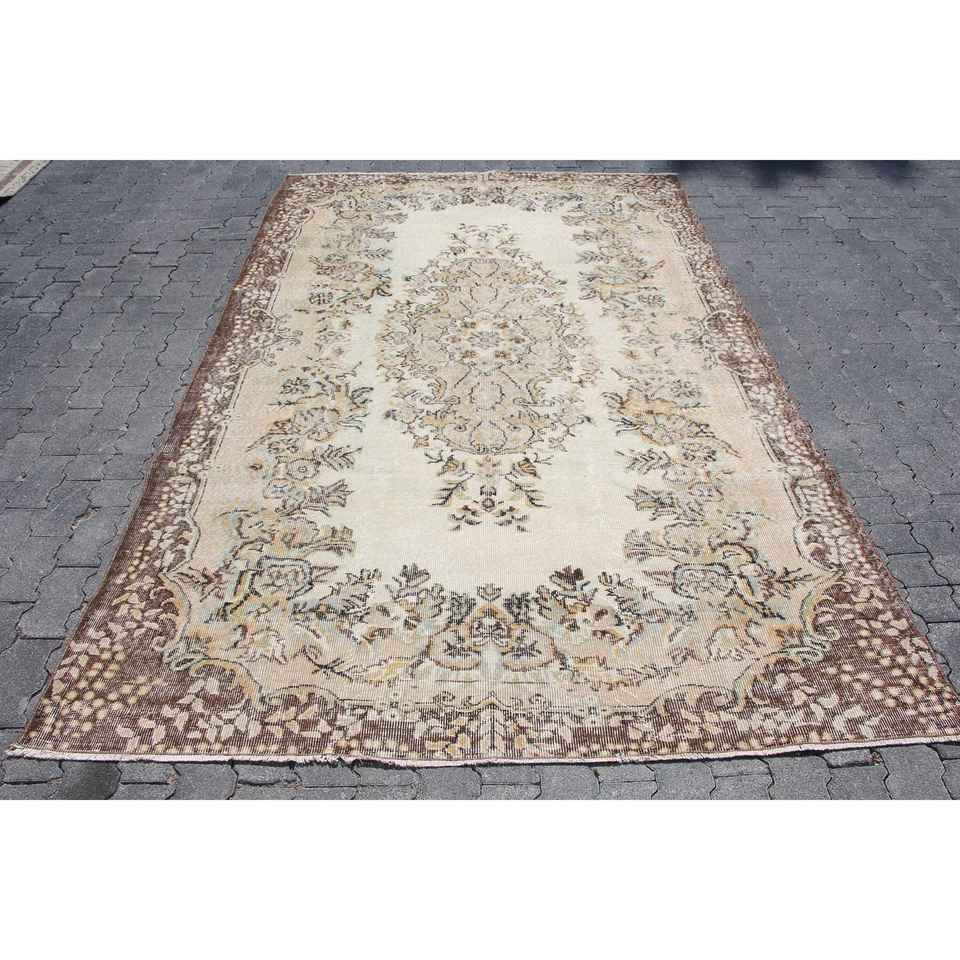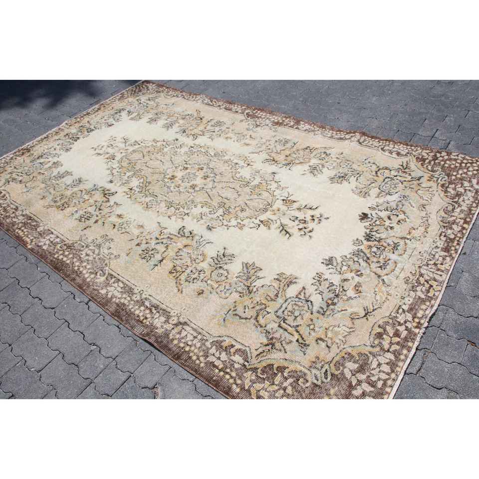 พรมวินเทจขนาด 6x6 ฟุต, พรมตุรกี, พรมขนสัตว์สีน้ำตาลขาวลายปะติด
