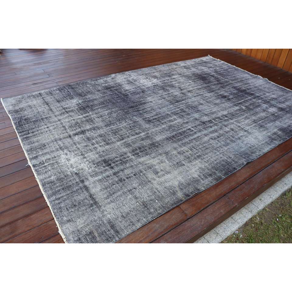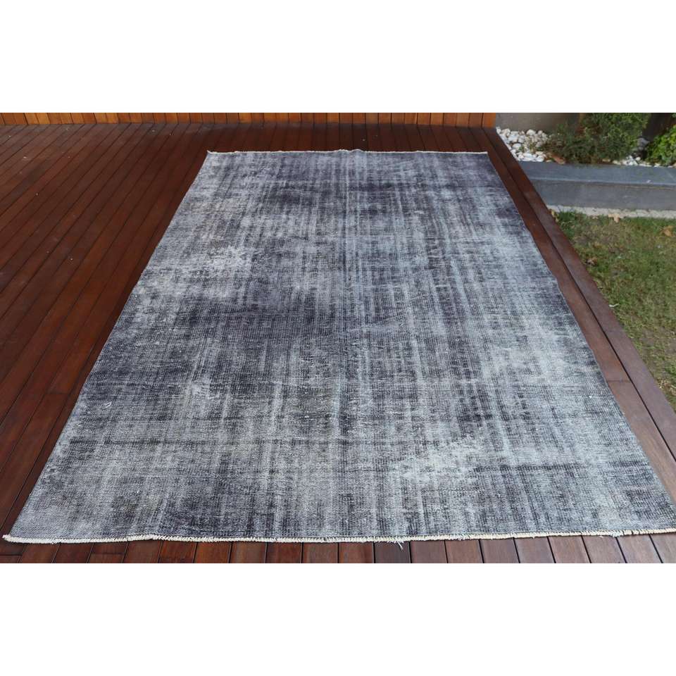 พรมวินเทจขนาดใหญ่ 6x8.9 ฟุต ลายต้นไม้และพืชสีเทาแบบตุรกี