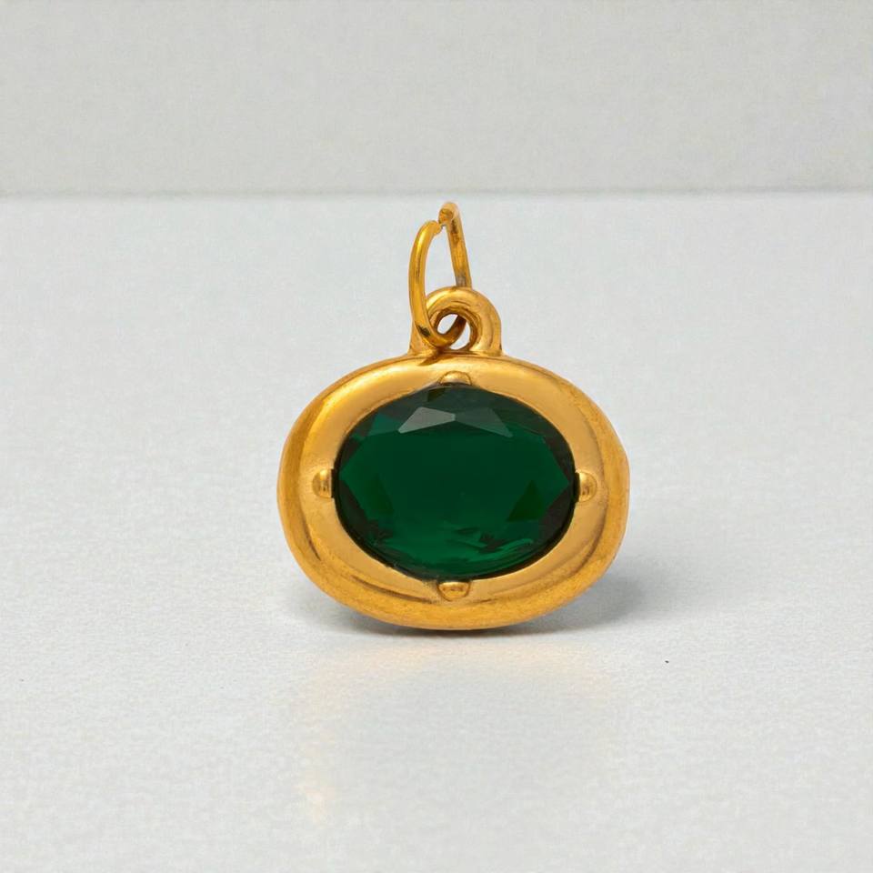 จี้รูปไข่ประดับพลอยประจำเดือนเกิดขนาด 6x8 มม. - จี้เงินแท้ 925 ชุบทอง ประดับพลอย ขายส่ง