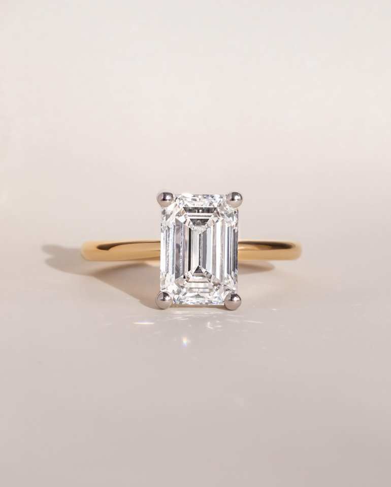 แหวนหมั้นเพชรโมอิส6x8มม. มรกต | แหวนทองหรือเงินโซลิแทร์ | เครื่องประดับชั้นดีสำหรับวันครบรอบแต่งงานแบบคลาสสิก
